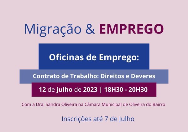 O Município de Oliveira do Bairro vai promover no dia 12 de julho, pelas 18h30, um workshop intitulado "Contratos de Trabalho ...30 Jun -