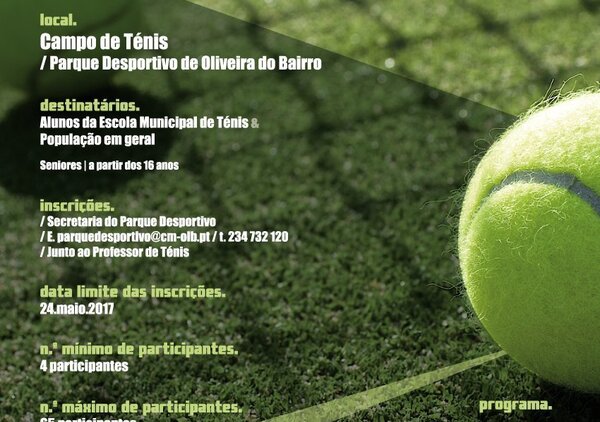 A Escola Municipal de Ténis de Oliveira do Bairro vai realizar no próximo fim de semana, 27 e 28 de maio, mais uma edição do ...22 Mai -