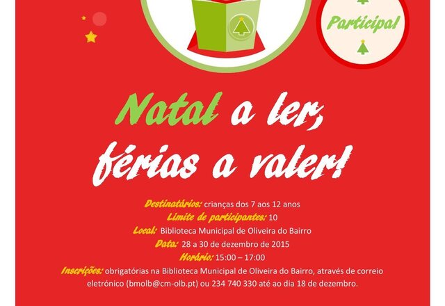 A Biblioteca Municipal de Oliveira do Bairro vai realizar, entre 28 e 30 de dezembro, mais uma edição da iniciativa “Natal a ... -