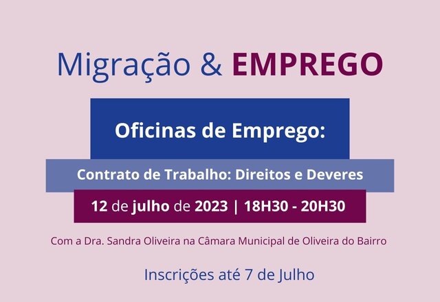 O Município de Oliveira do Bairro vai promover no dia 12 de julho, pelas 18h30, um workshop intitulado "Contratos de Trabalho ... -