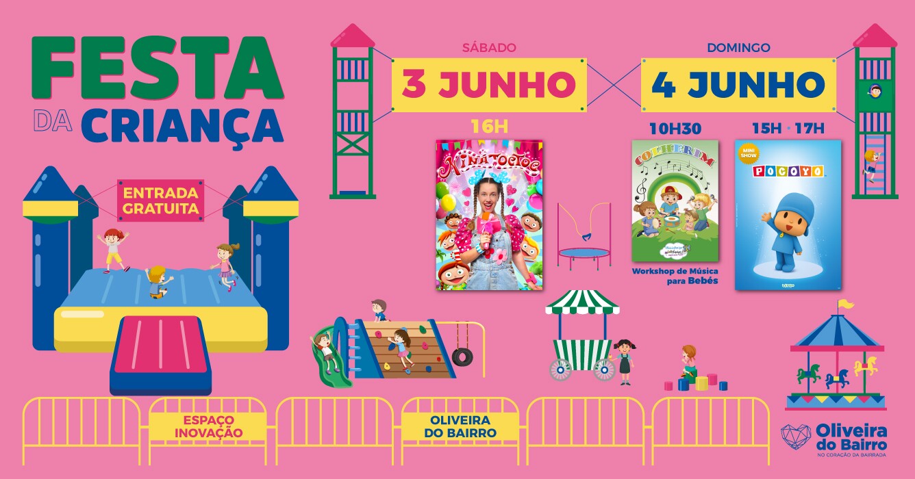 O Espaço Inovação, em Oliveira do Bairro, volta a transformar-se num mega parque de diversões totalmente gratuito, nos dias 3 e 4 de junho, para mais uma edição da Festa da Criança.