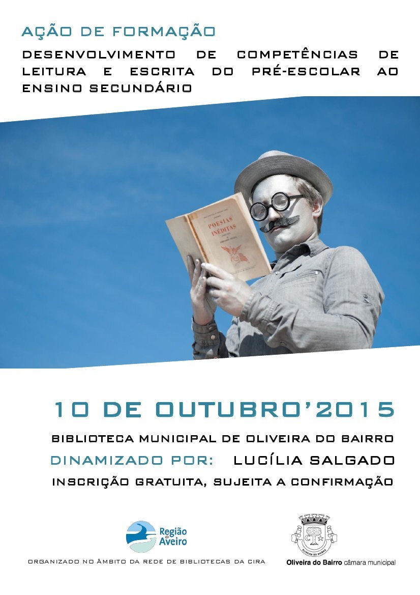 A Biblioteca Municipal de Oliveira do Bairro recebe no dia 10 de outubro a ação de formação “Desenvolvimento de Competências de Leitura e Escrita do Pré-escolar ao Ensino Secundário”, destinada a professores, pedagogos, educadores de infância, técnicos de Biblioteca, mediadores de leitura e público em geral.