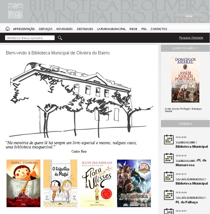 O dia 14 de outubro vai ficar marcado pelo arranque do novo ano letivo do projeto BiblioCaixa, que passará pelas escolas do concelho, e pela apresentação da nova plataforma digital da Biblioteca Municipal de Oliveira do Bairro, que será disponibilizada on-line (em http://bm.cm-olb.pt) com informações e serviços vários, que passam pela consulta do catálogo da Biblioteca e dos Polos de Leitura do município, inscrição na newsletter ou a possibilidade de receber no seu endereço eletrónico informação com as novidades editoriais que deram entrada no catálogo, de acordo com o interesse específico de cada utente, entre outras funcionalidades. A visualização deste novo serviço poderá ser feita durante os três dias do programa, entre as 10h00 e as 19h00 (com interrupção entre as 13 e as 14h00).