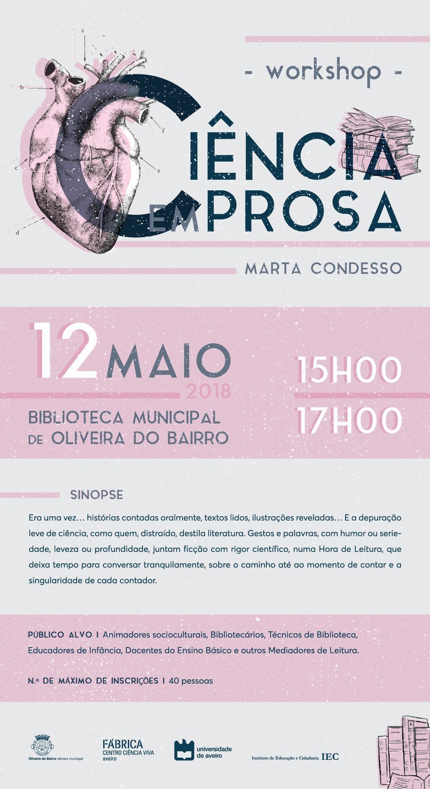 A iniciativa, que integra o programa conjunto do Instituto de Educação e Cidadania e da Rede de Bibliotecas de Oliveira do Bairro, será orientada por Marta Condesso, da Fábrica Centro de Ciência Viva de Aveiro / Universidade de Aveiro.