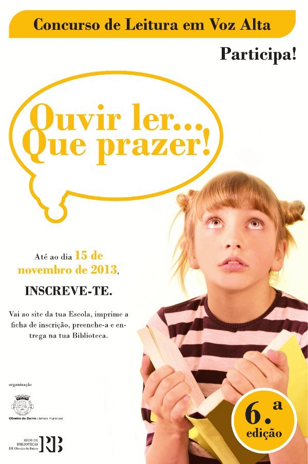 A Rede de Bibliotecas do Concelho de Oliveira do Bairro (RBOB) vai promover mais uma edição do Concurso de Leitura em Voz Alta "Ouvir Ler... Que Prazer!", dirigido a todos os alunos do Agrupamento de Escolas de Oliveira do Bairro (AEOB) e do Instituto de Promoção Social de Bustos (IPSB).