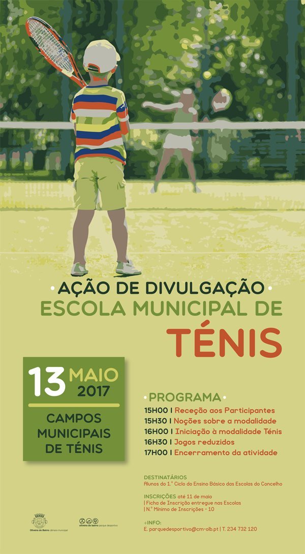 A Escola Municipal de Ténis de Oliveira do Bairro vai realizar no próximo dia 13 de maio uma ação de divulgação da modalidade, dirigida a alunos do 1.º Ciclo das escolas do Concelho.
