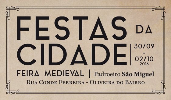 As Festa da Cidade de Oliveira do Bairro regressam nos próximos dias 30 de setembro, 1 e 2 de outubro, num evento que pretende recriar, à época da Idade Média, os festejos em honra de S. Miguel, padroeiro da cidade e da freguesia.