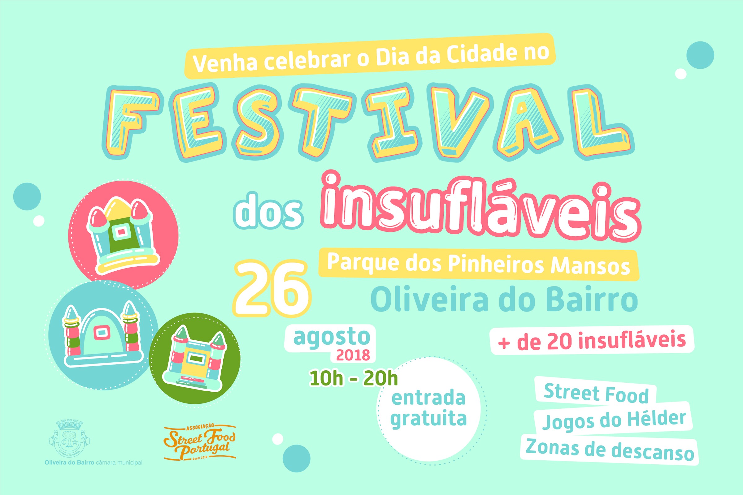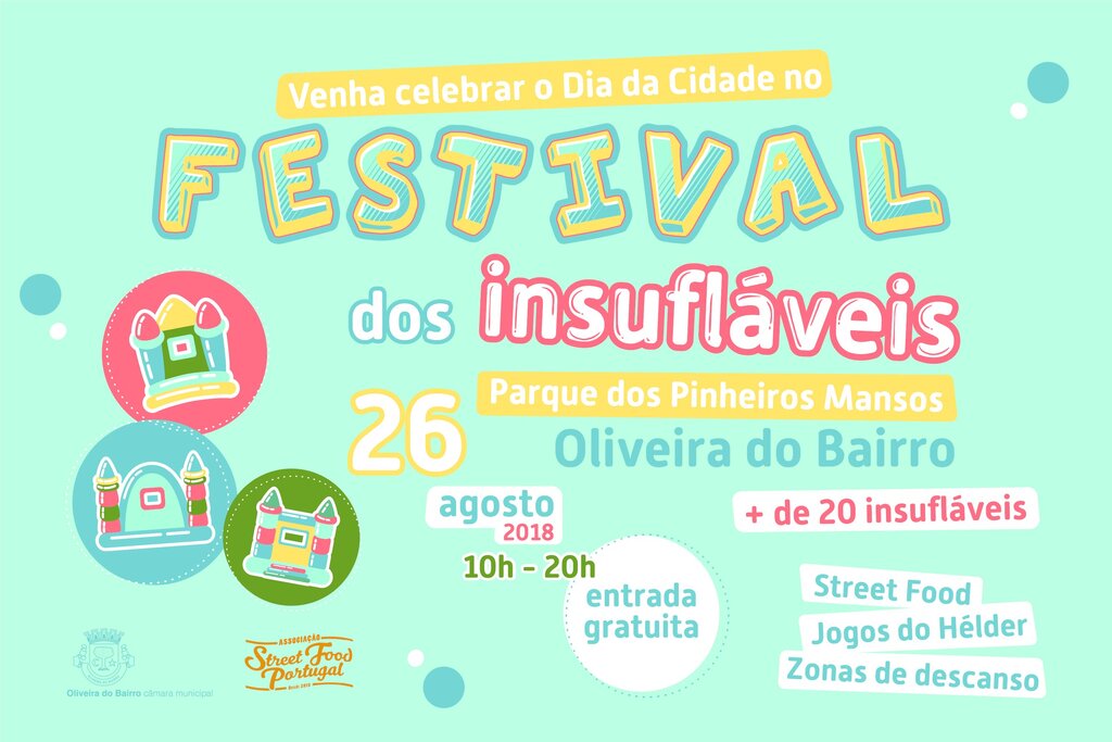 A cidade de Oliveira do Bairro, vai acolher no dia 26 de agosto, a primeira edição do Festival dos Insufláveis, evento totalmente gratuito, que vai proporcionar um dia diferente e com muita animação a todas as famílias do Concelho e da Região.