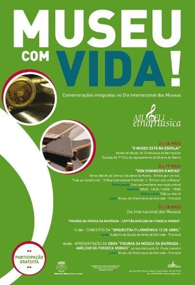 No âmbito da comemoração do Dia Internacional dos Museus, que se assinala a 18 de maio, o Museu de Etnomúsica da Bairrada organiza a edição de 2013 do programa “Museu com VIDA!”, que contará com 16 dias de várias atividades.