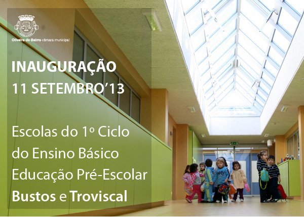 O Município de Oliveira do Bairro recebe amanhã, 11 de setembro de 2013 a partir das 10h00, a visita do Primeiro-Ministro, Pedro Passos Coelho, e do Ministro da Educação e Ciência, Nuno Crato, para a inauguração das Escolas do 1º Ciclo do Ensino Básico e Educação Pré- Escolar de Bustos e Troviscal.