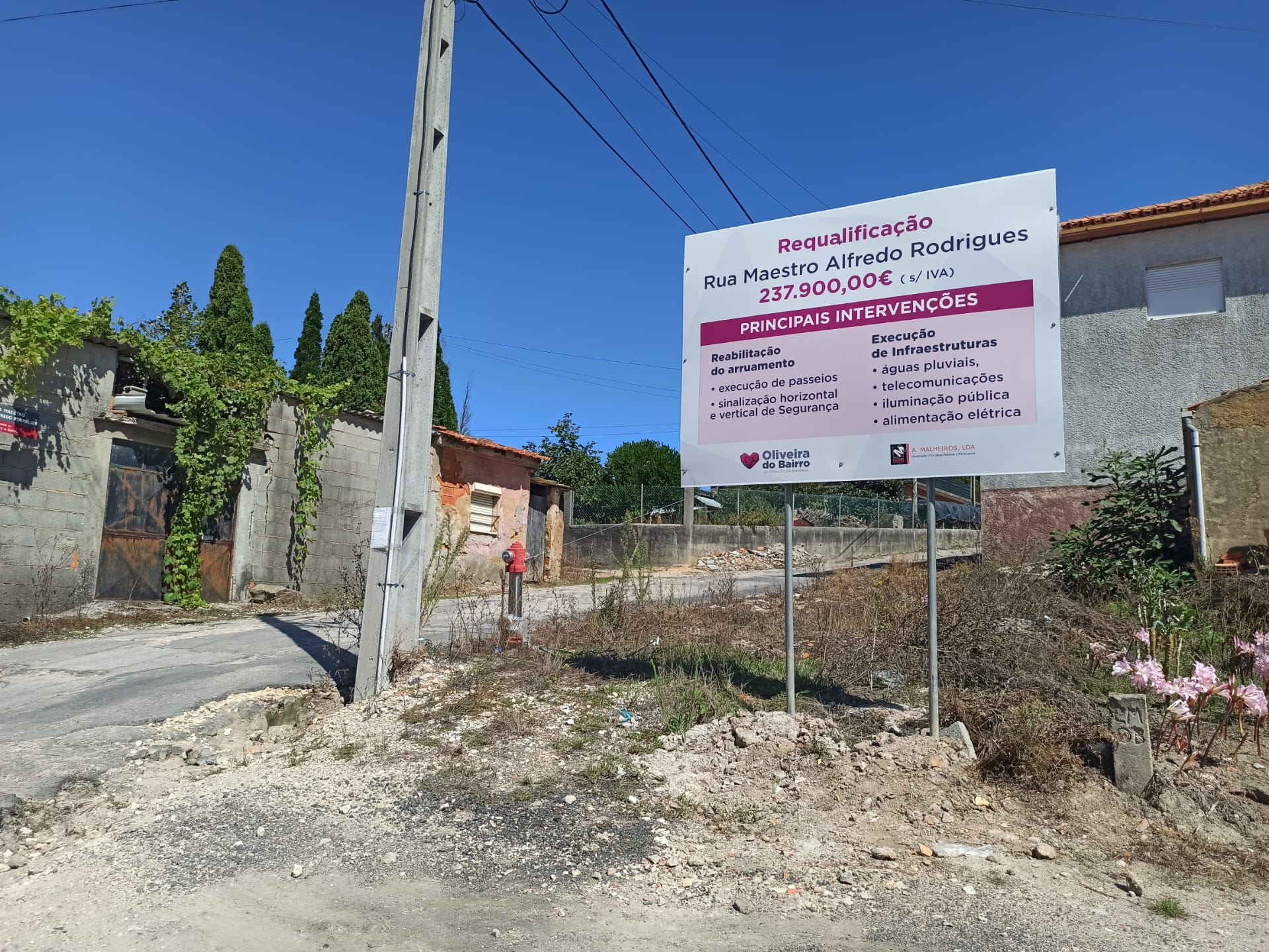 Vão ser iniciadas, esta semana, as obras de requalificação da Rua Maestro Alfredo Rodrigues, em Oliveira do Bairro.