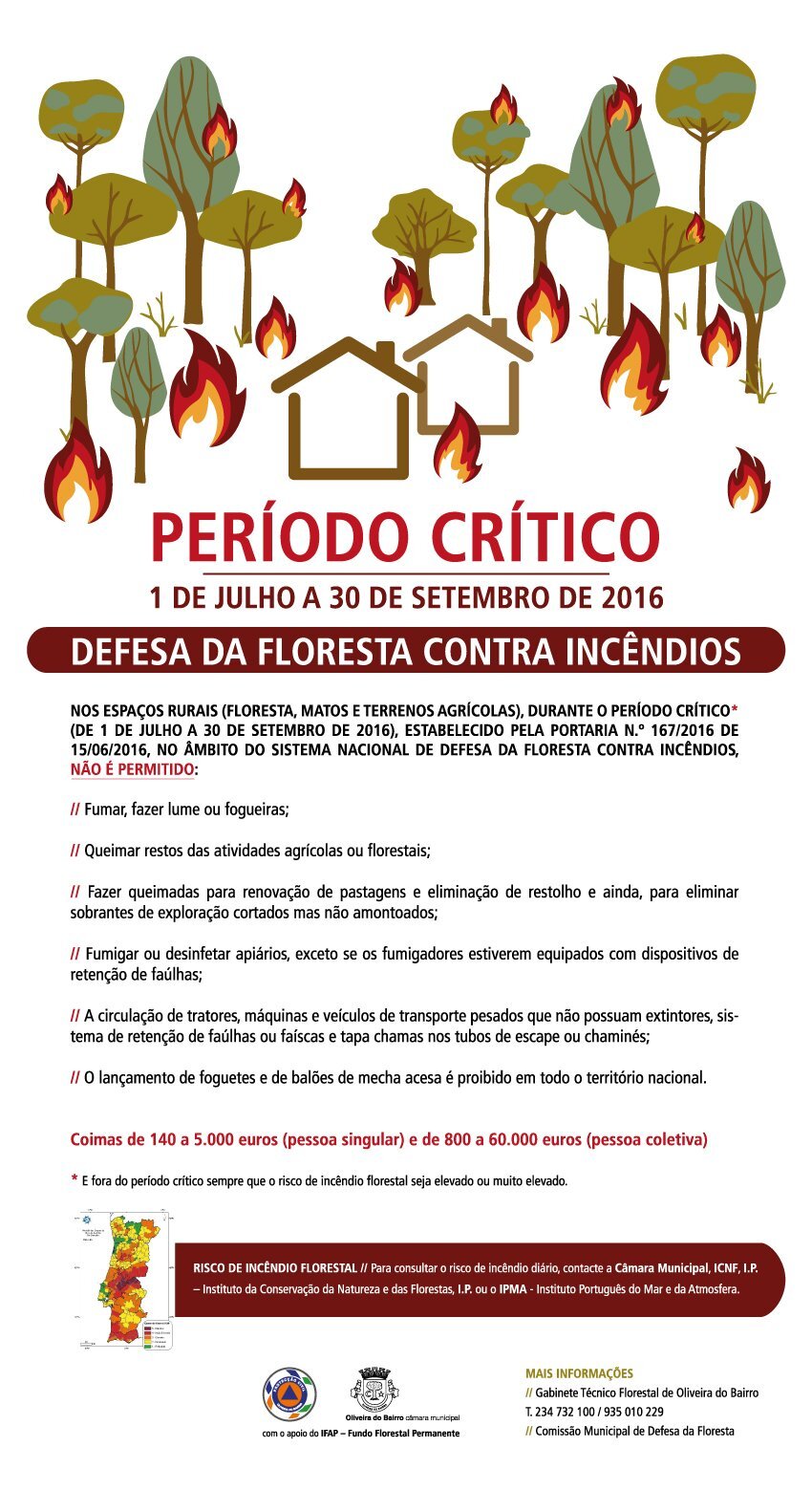 Conheça o Risco de Incêndio diário no Concelho de Oliveira do Bairro, através deste link.