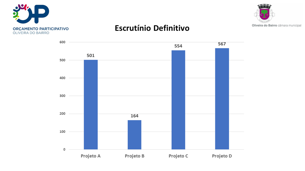 Em relação ao projeto A (3.º classificado), apesar de já não ter verba suficiente disponível (no âmbito do Orçamento Participativo) para a sua completa execução, poderá, o Executivo do Município, optar por disponibilizar o valor em falta.
