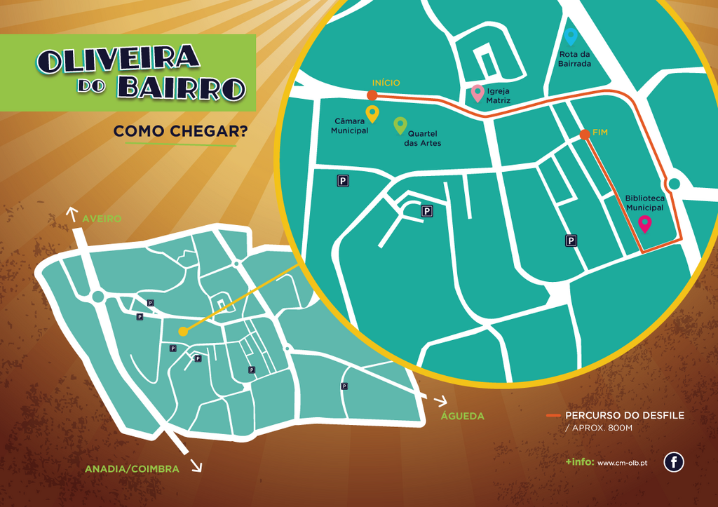 O desfile, que vai percorrer as ruas da cidade, tem início marcado para as 15h00, junto à Câmara Municipal. A adesão da comunidade ao evento cresceu significativamente e este ano o corso vai contar com crianças de cinco IPSS do Concelho (Santa Casa da Misericórdia de Oliveira do Bairro, Solsil, Centro Ambiente para Todos, AMPER e Infantário Frei Gil).