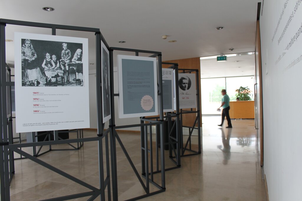 Assim, "Marie Curie - mulher, mãe e cientista" é uma exposição que pretende dar a conhecer a vida e obra de Marie Sklodowska Curie, através de uma linha temporal;revelar os trabalhos dos alunos do Agrupamento de Escolas de Oliveira do Bairro premiados nos concursos de poesia “Marie Curie em palavras”, ilustração “A Química no papel” e fotografia “A Química em fotografia”;revisitar as atividades dinamizadas no âmbito das comemorações do AIQ e recriar um ambiente de laboratório de Química.