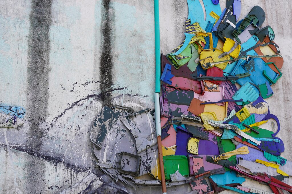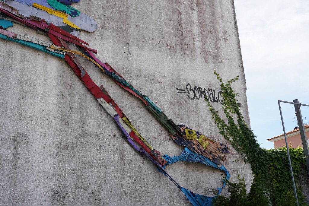 A Cegonha, feita de material reciclado, é uma recriação de Bordalo II, na série Half/ Half.