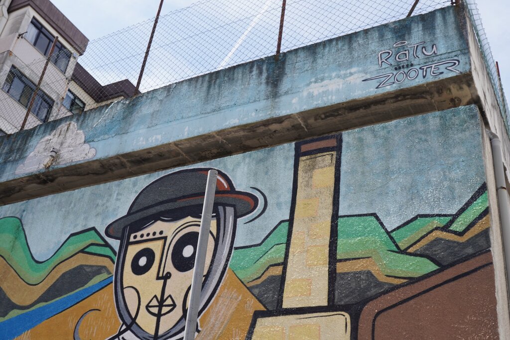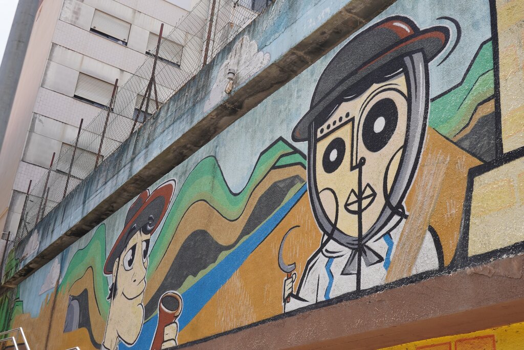 A obra de Ratu e Zooter, retrata o Rio Cértima e os arrozais, plantados ao longo da sua margem, bem como a cerâmica, uma das principais indústrias do concelho.