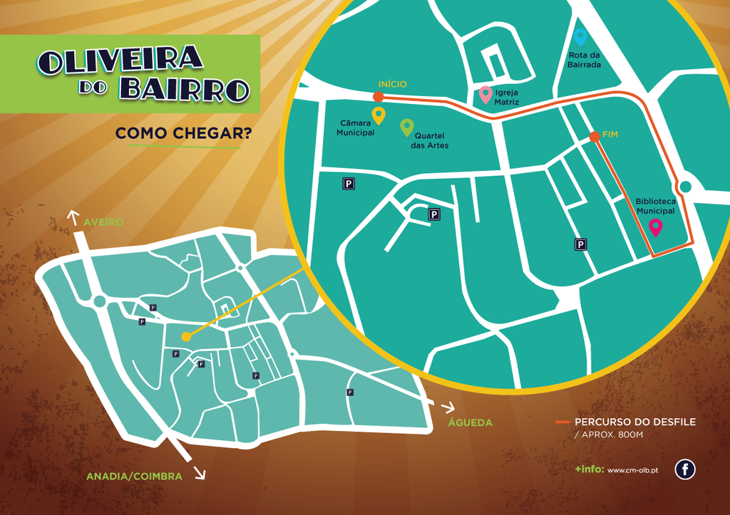 O desfile, que vai percorrer as ruas da cidade, tem início marcado para as 15h00, junto à Câmara Municipal. A adesão da comunidade ao evento cresceu significativamente e este ano o corso vai contar com crianças de cinco IPSS do Concelho (Santa Casa da Misericórdia de Oliveira do Bairro, Solsil, Centro Ambiente para Todos, AMPER e Infantário Frei Gil).