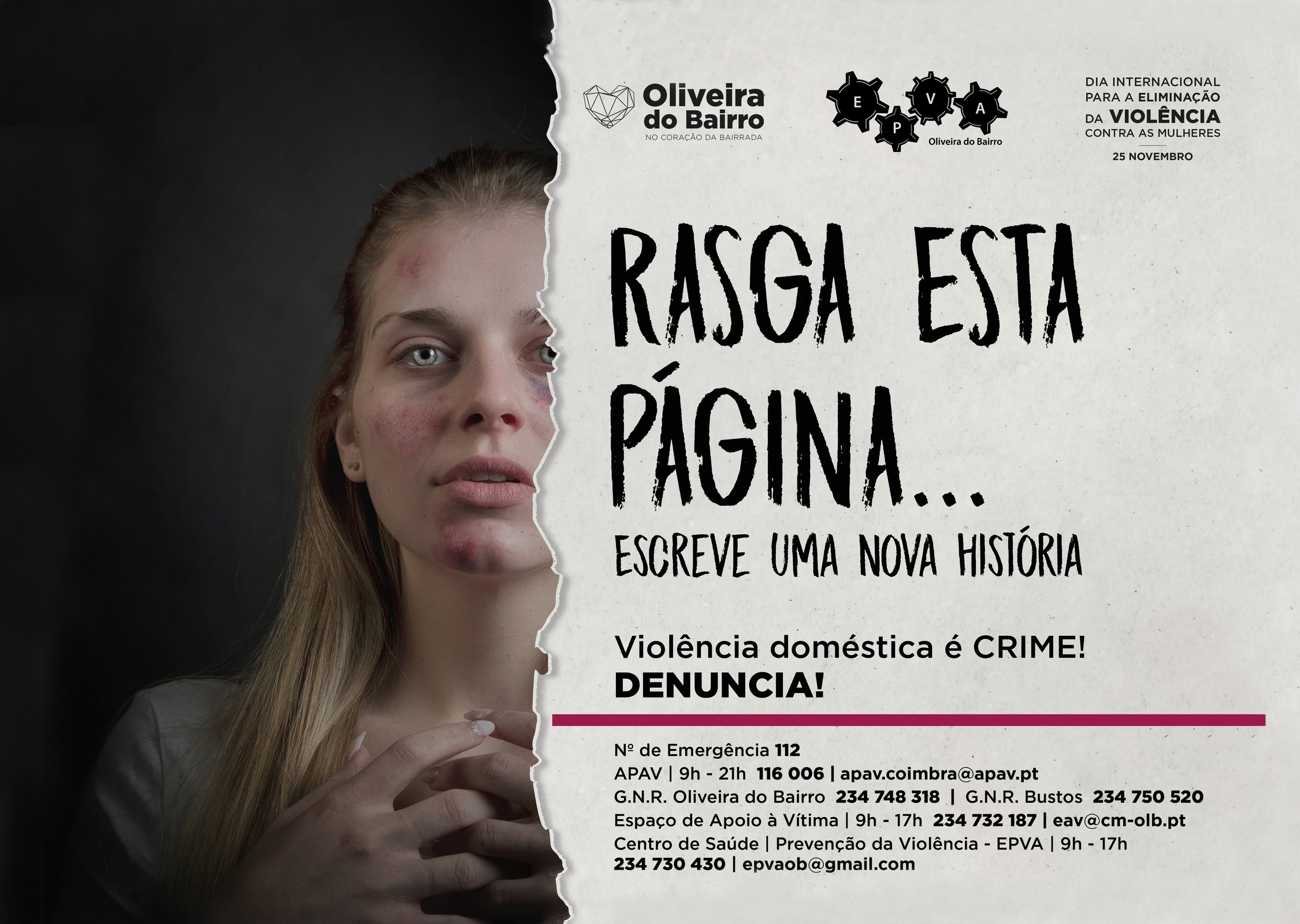 O Município de Oliveira do Bairro e a Equipa de Prevenção de Violência a Adultos (EPVA) do Centro de Saúde local lançaram uma campanha de sensibilização contra a violência doméstica.