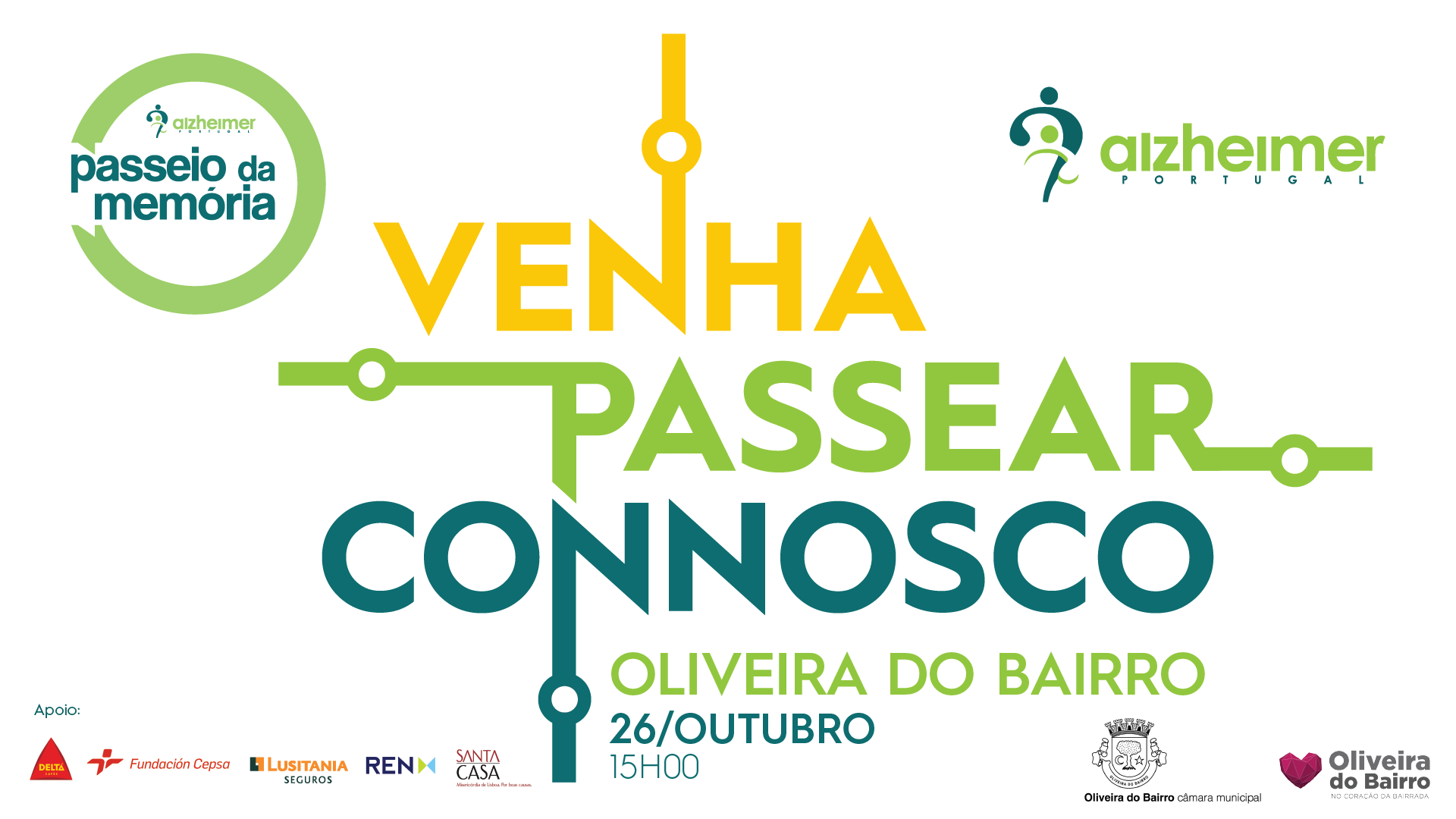 O Município de Oliveira do Bairro vai promover, em parceria com a Associação Alzheimer Portugal, o “Passeio da Memória”, no dia 26 de outubro, com o objetivo de sensibilizar a população para a Doença de Alzheimer, que afeta, segundo os últimos estudos, mais de 200.000 pessoas em Portugal.