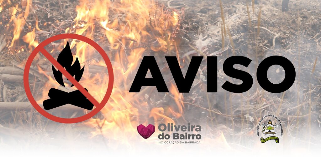 Atento aquele cenário e como forma de prevenção de risco de incêndio, o Município de Oliveira do Bairro, em consonância com os Bombeiros Voluntários de Oliveira do Bairro, comunica através do presente AVISO que fica interdita a realização de queimas e queimadas, no período de 11 a 14 de junho.